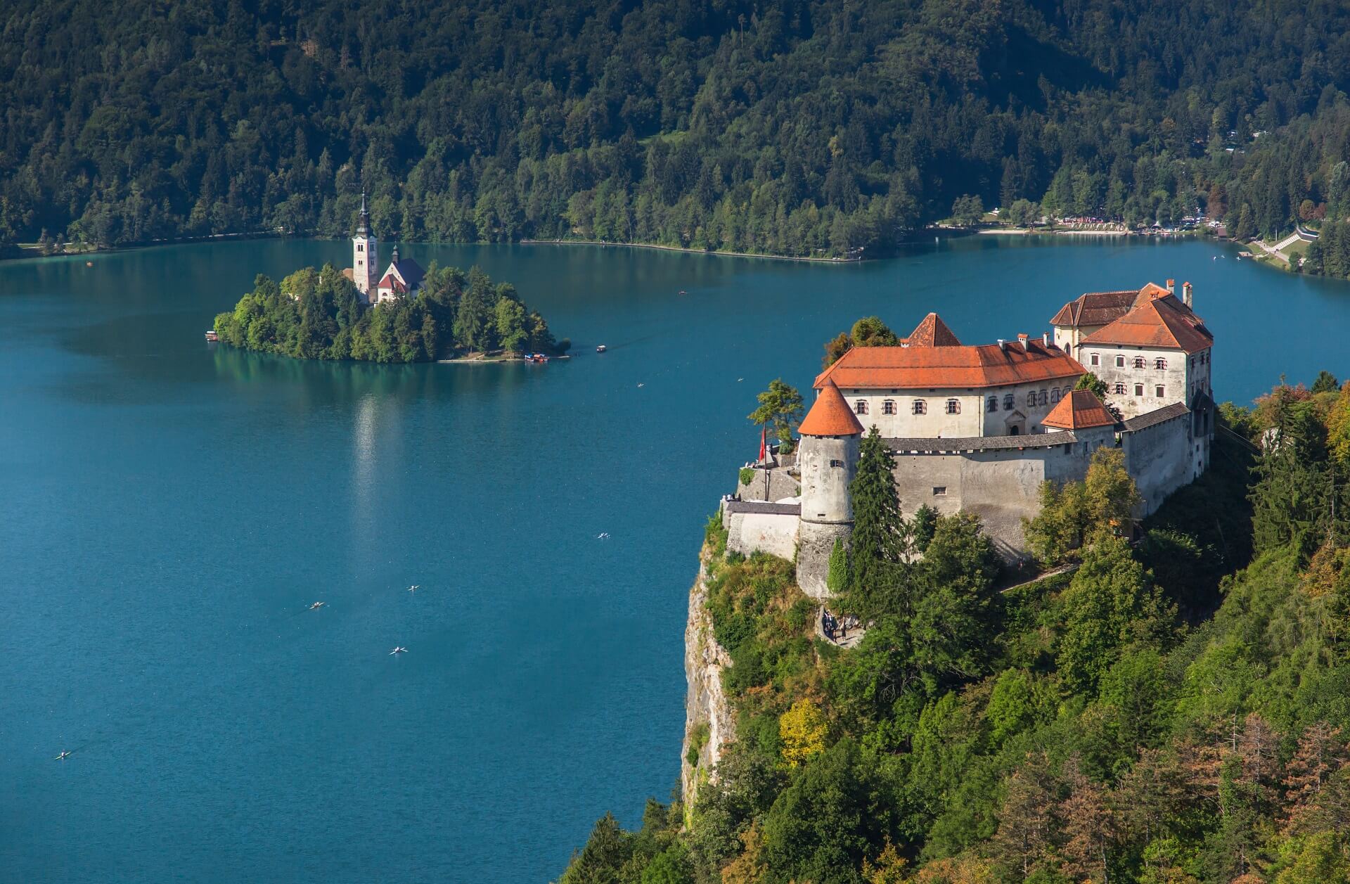 Ogledate si lahko slavni Blejski otok s cerkvijo ali pa se povzpnete na Blejski grad in uživate v najimenitnejšem razgledu na jezero, kraj in okolico.